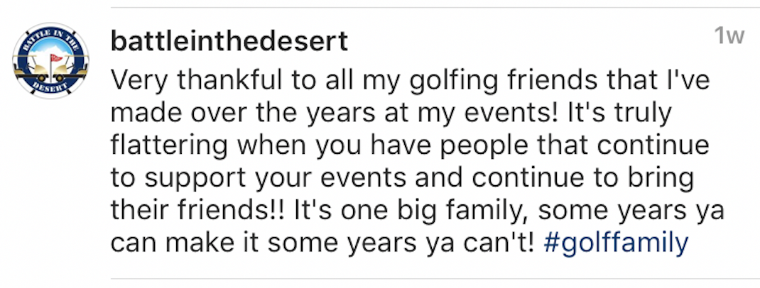 Hi i would like to share the fact that im thankful that i get to do what i love for a living and the possibility of being in the golf course every day as some people for one reason or another are unable to move or even dream of playing golf.