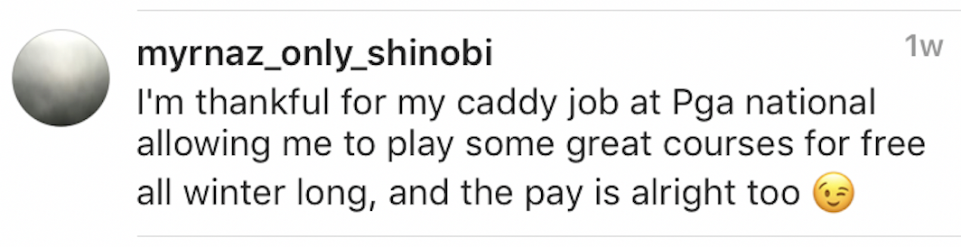 Oh man, so much to be thankful for. I'm just thankful for the game in golf in general if I'm having a good day or bad I always turn to the course to clear my mind. I've been playing golf since I was 3 and I attribute my outlook of life to the game of golf because in many ways a round of 18, is like life. You have your good shots and bad ones, but it's how you come back from those bad ones and keep moving forward.