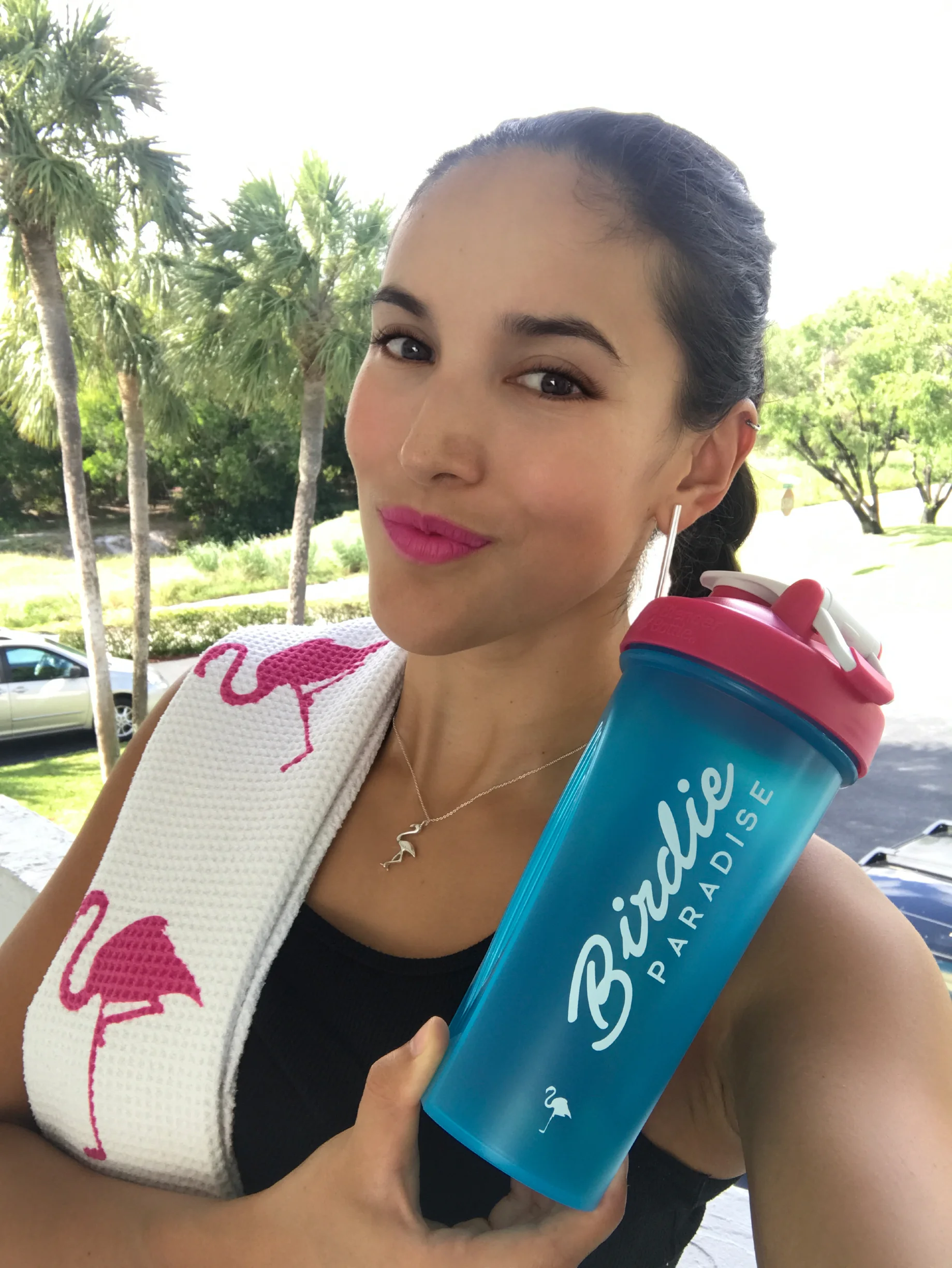 My lovely flamingo towel is super cute and absorbent. The first couple of weeks I used it as a gym towel because I didn't want to get it dirty. Eventually I gave in and took it to the course where I got a million compliments on it.